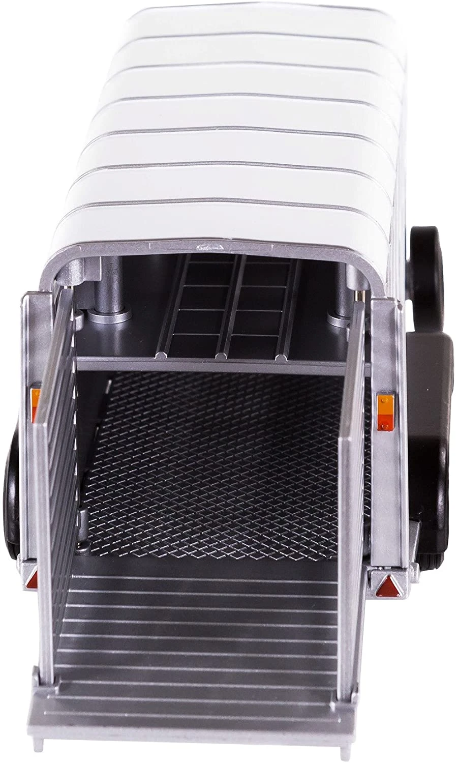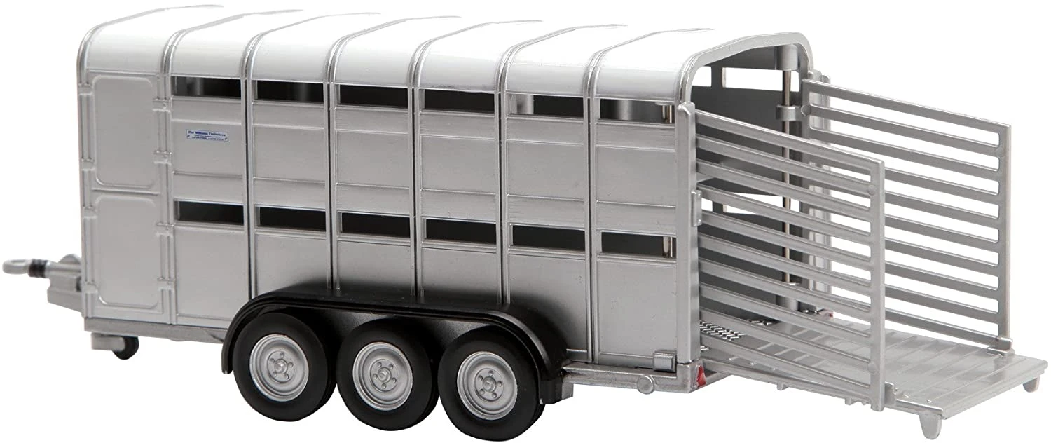 This cattle trailer fits almost all Britains vehicles with a 1: 32 scale. This way the cattle on your farm can easily be transported. This trailer adds a fun playing dimension to your farm playing world! The tailgate can be raised for easy loading and unloading. Livestock from Britains are available separately. Safety Warning Not suitable for children under 3 years. For use under adult supervision